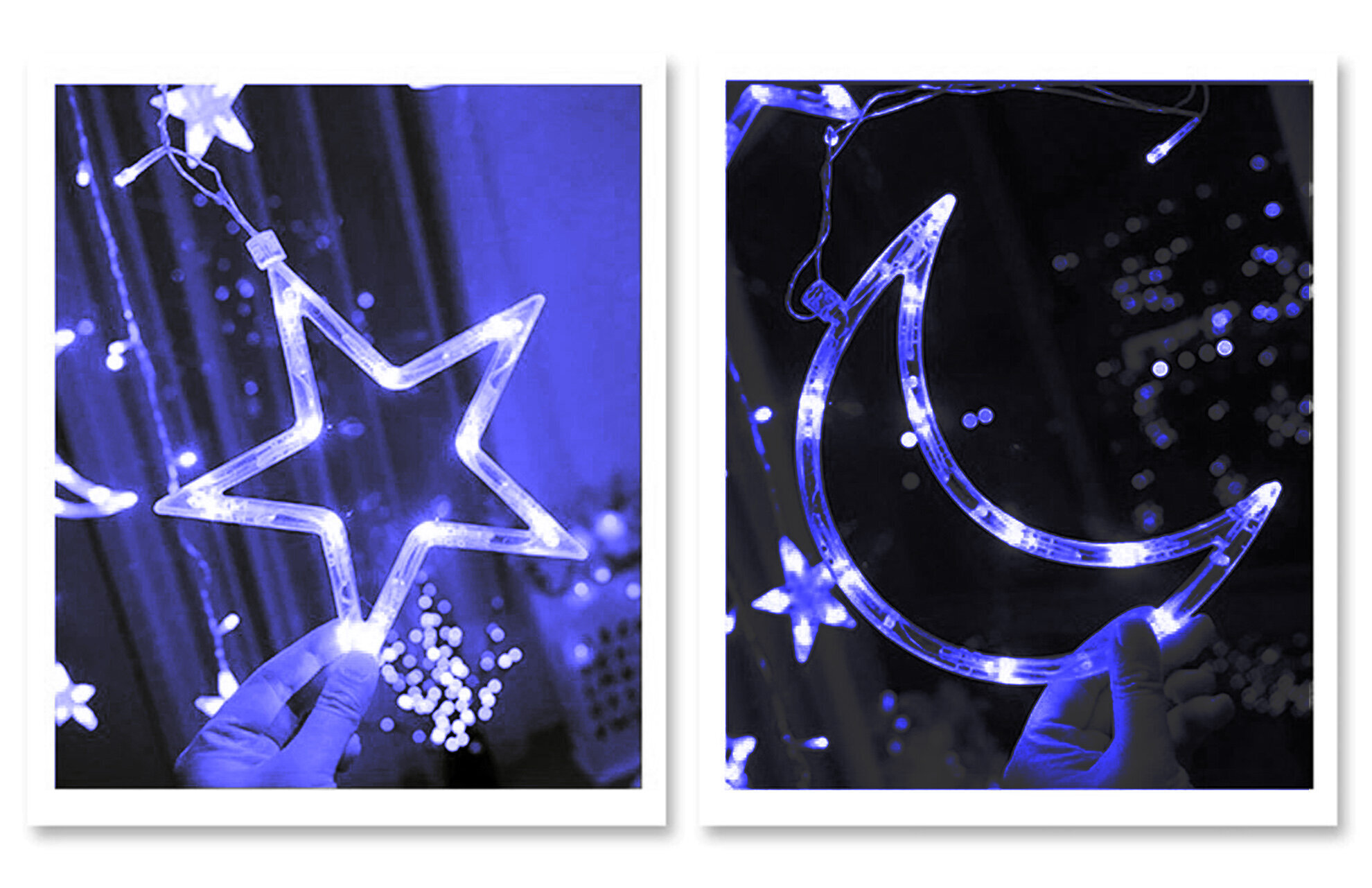 Светодиодная гирлянда 6 звезд и 6 полумесяцев.