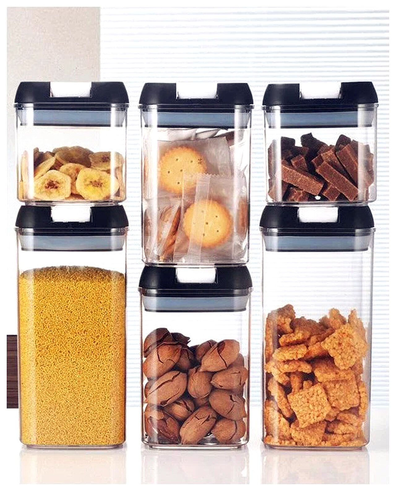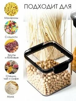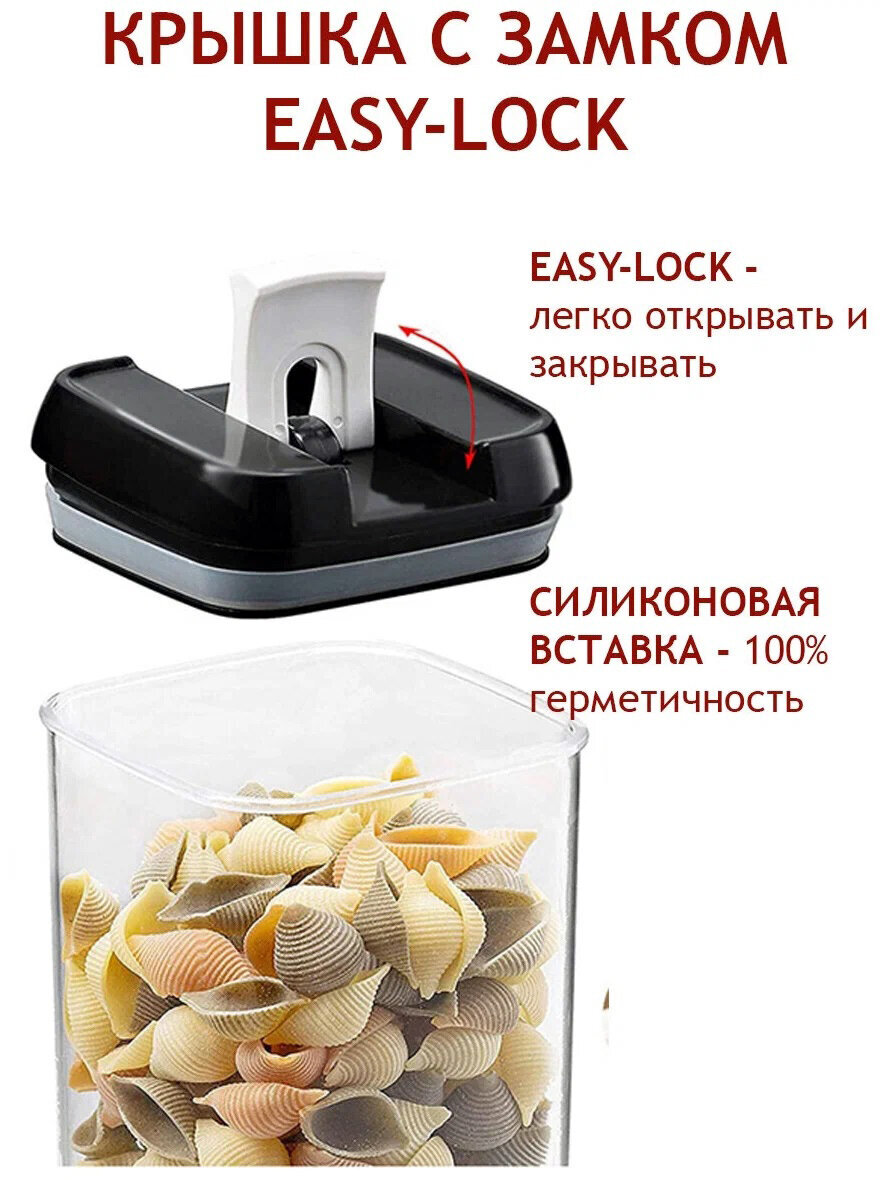 Контейнеры для хранения сыпучих продуктов выполнены из безопасного пищевого пластика, который безвреден и не имеет запаха. Банки для сыпучих продуктов прозрачные, имеют плотно закрывающиеся крышки , защищающие еду от влаги и посторонних запахов. Контейнеры для еды, в которых удобно хранить крупы, специи, макаронные изделия, сахар, муку, бобовые, контейнеры выполнены в едином современном стиле.