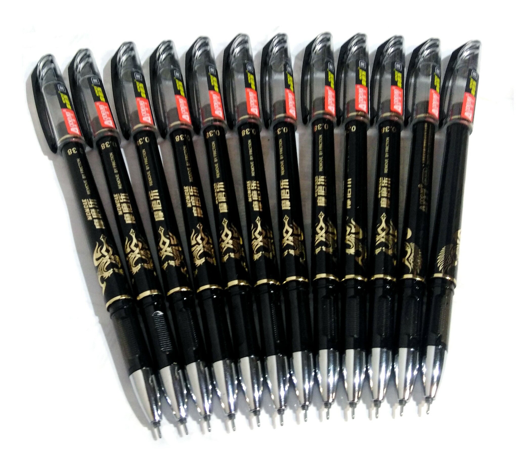 Набор из 12 гелевых ручек Пиши-стирай с чёрными чернилами.