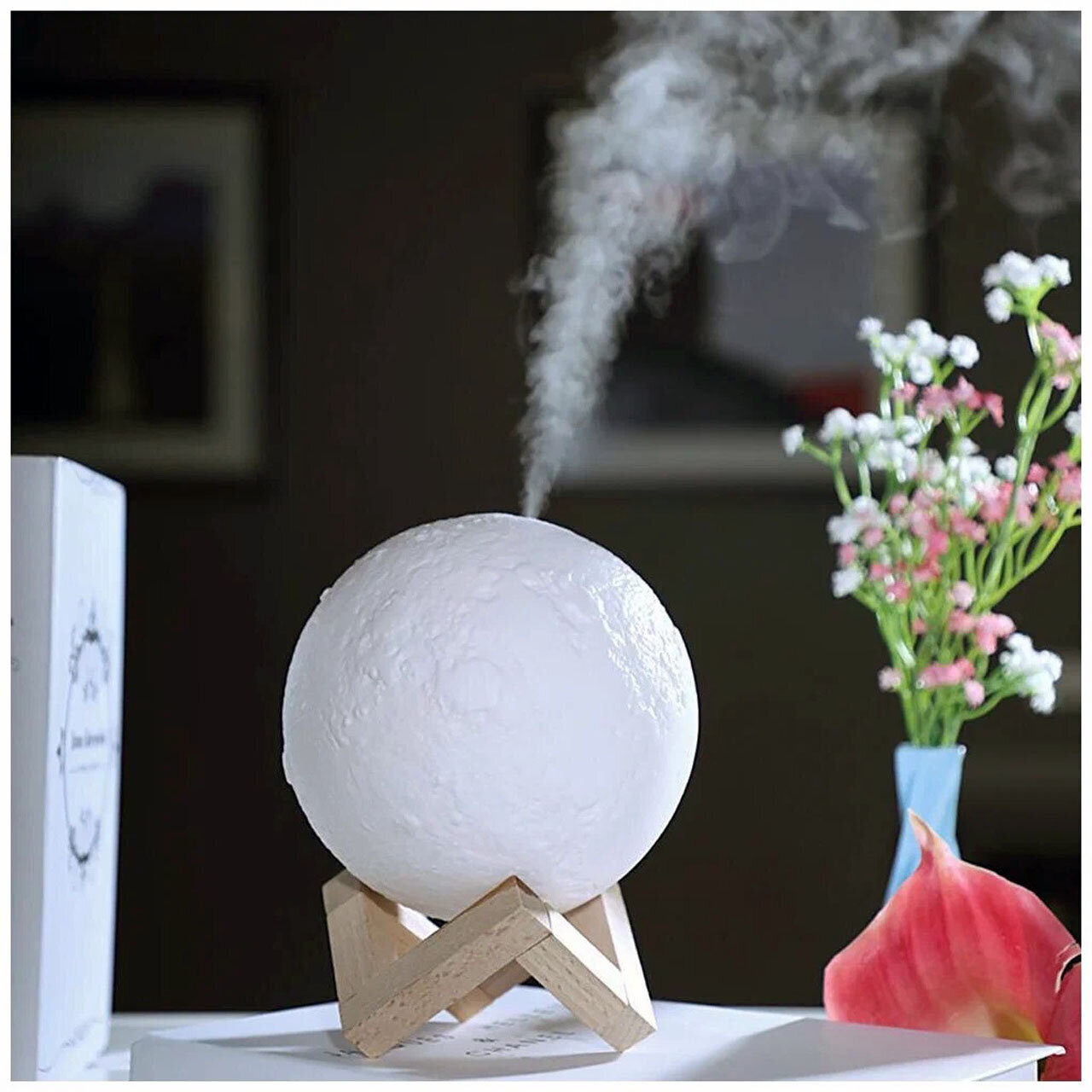 Лампа-луна с увлажнителем воздуха изготовлена по инновационной технологии 3D печати на основе астрологических данных, чтобы создать настоящий лунный рельеф. Создает атмосферу уюта в вашем доме и является отличным дополнением к интерьеру. Не нагревается, можно класть в кровать, носить в руках, или оставить на мебели. Лампа так же является увлажнителем воздуха, инновационная технология работает мягко и бесшумно. Увлажнение воздуха полезно для дыхания, кожи и здоровья человека. Добавьте ароматическое масло и используйте лампу как ароматизат