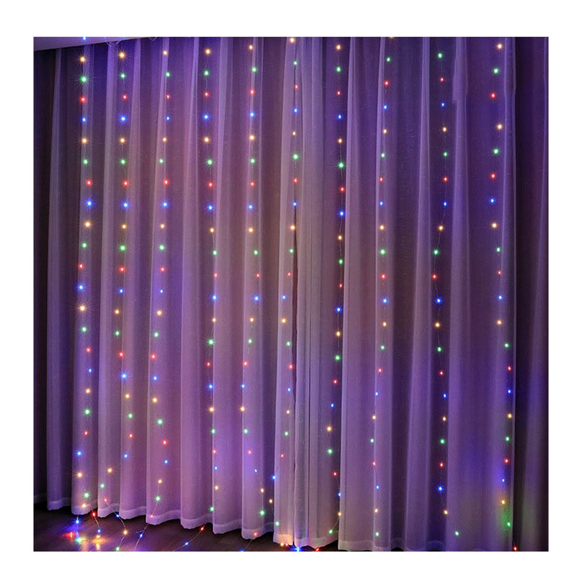 Колор света- 4-х цветный (синий, зеленый, желтый, красный). Светодиодный светильник -- штора идеально подходит для украшения фонов: новогодних, свадебных, отелей, ресторанов, коммерческих зданий, дома, окон, клубов, концертов, караоке, модных шоу, танцевального зала