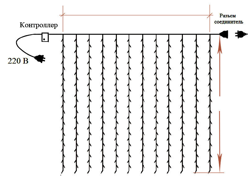 Колор света- 4-х цветный (синий, зеленый, желтый, красный). Светодиодный светильник -- штора идеально подходит для украшения фонов: новогодних, свадебных, отелей, ресторанов, коммерческих зданий, дома, окон, клубов, концертов, караоке, модных шоу, танцевального зала