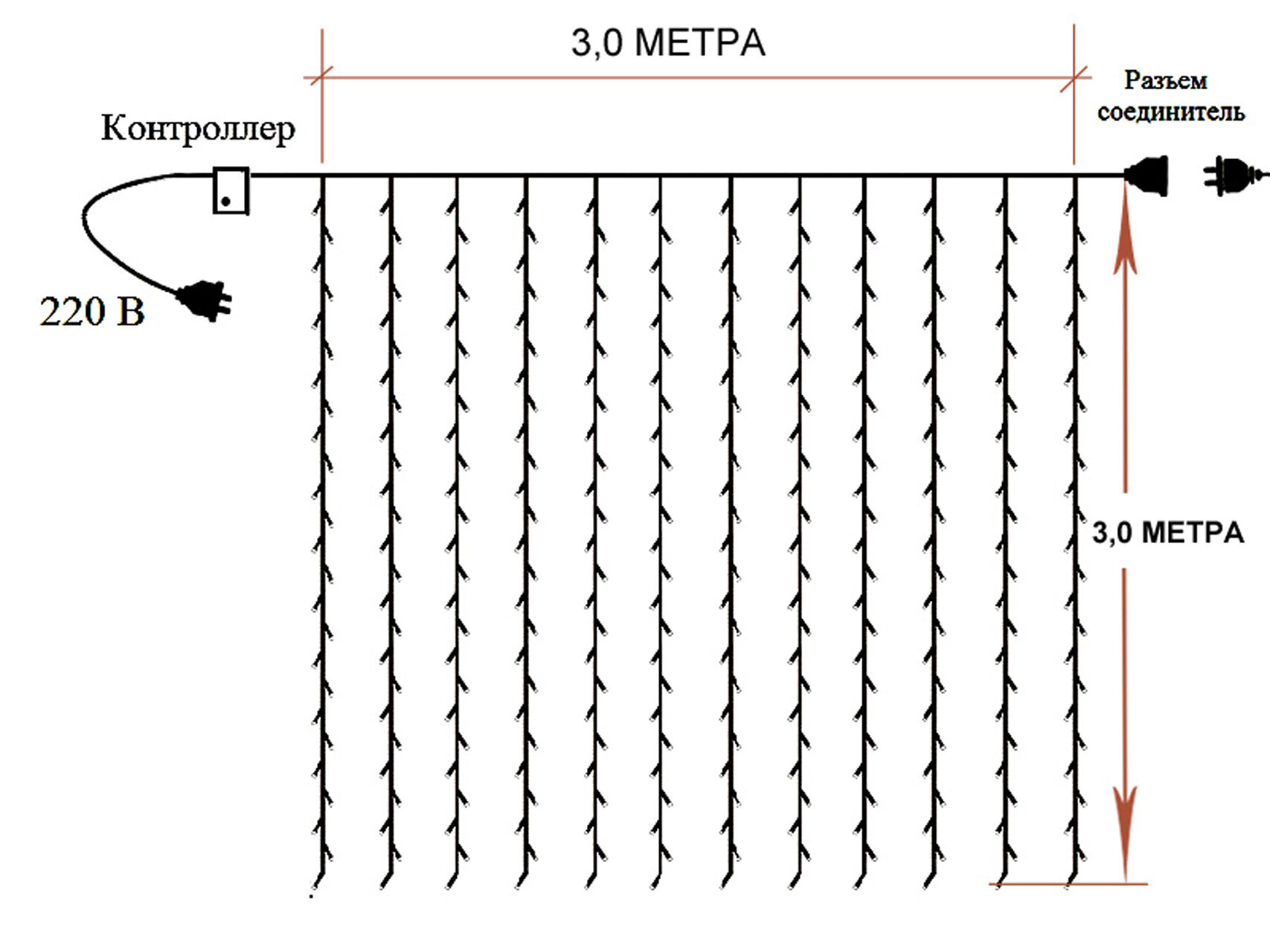 Светодиодная штора 3х3 м белый цвет, пульт